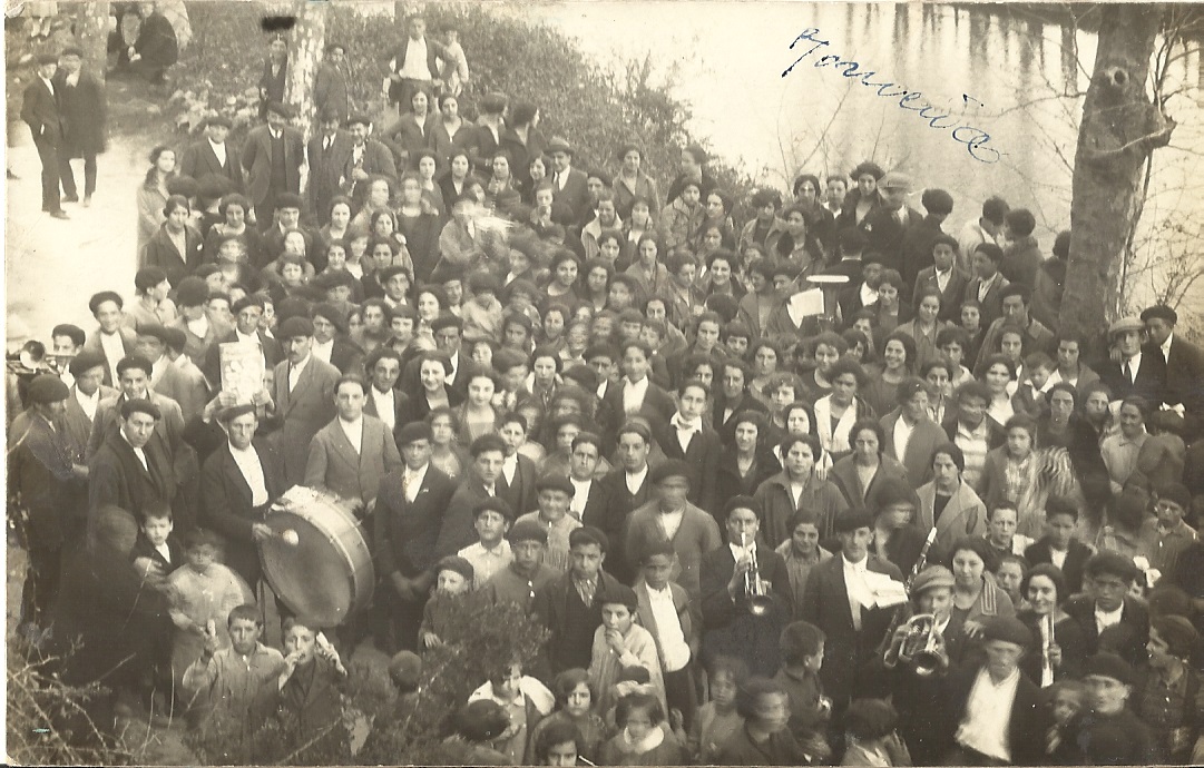 En esta vieja fotografía procedente de la colección de Carlos García se ve la Romería de las Candelas, que se celebraba, creo que el 2 de febrero en Marrón, el de Abajo, junto al río Asón."Se inauguró la temporada romera con la fiesta tradicional de "Las Candelas" que desde tiempo inmemorial viene celebrándose en el pintoresco pueblo de Marrón y sitio de La Barca, a la margen izquierda del río Asón. Febo nos favoreció con sus luminosos rayos que caldeaban la atmósfera, y el ánimo de la numerosa grey romera, animando a la juventud bulliciosa a rendir culto a la Diosa Tersípolis a los melidiosos acordes de la Banda Municipal y el clásico Tamboril. Fue un día delicioso de esparcimiento y solaz que recordamos con gusto".